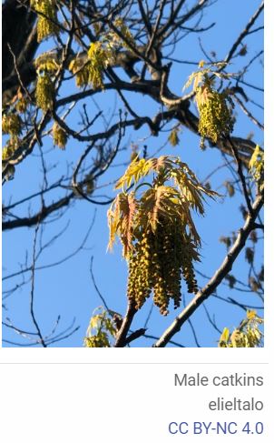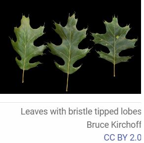 Black oak at maturity has nearly black bark with yellow inner bark. Blooms occur in spring with male catkins and short female spikes. The green leaves are deeply to shallowly lobed and turn yellow-brown or a dull red in winter. The acorn is rounded and nearly covered by half with the cap. As is most oak trees, this tree has a high-value wildlife rating and supports butterflies and moths, birds and mammals. It can live up to 200 years of age.