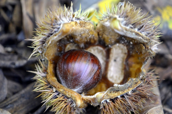 Chinese chestnut is a medium-sized deciduous flowering tree that is a native of China and, in its natural habitat, often found in woods, forests, and mountain slopes from sea level to 9000 feet. This tree can reach a height and spread of about 40 feet, with a symmetrical and round crown. It branches close to the ground, which makes it a good landscape tree. The smell of the flower might be offensive to some people. The nut is edible and attracts wildlife, but use caution when handling it because it is spiny. The tree is resistant to chestnut blight. Chinese chestnut will make a good shade tree in the landscape and has interesting fall color.