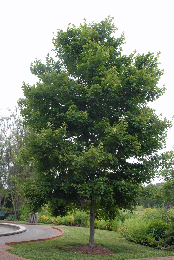 Red maple is a native, deciduous tree in the Sapindaceae (soapberry) family that may grow to 120 feet tall with a trunk 6 feet in diameter, but is more commonly 40 to 70 feet high and 1 1/2 to 2 1/2 feet across. It is a handsome shade tree with a rounded crown and ascending branches to a 30- to 50-foot spread. In nature, it can be found growing in upland deciduous forests, up to at least 1500 meters in elevation.