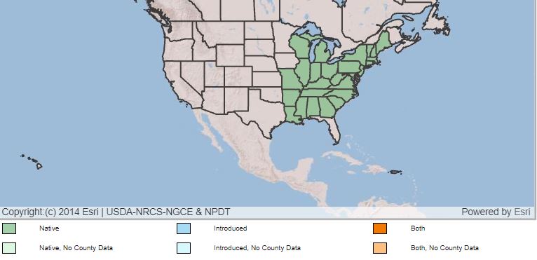 It is native to North Central and the Eastern United States. It is found in dry upland forests in the Piedmont and middle to lower mountains of North Carolina.